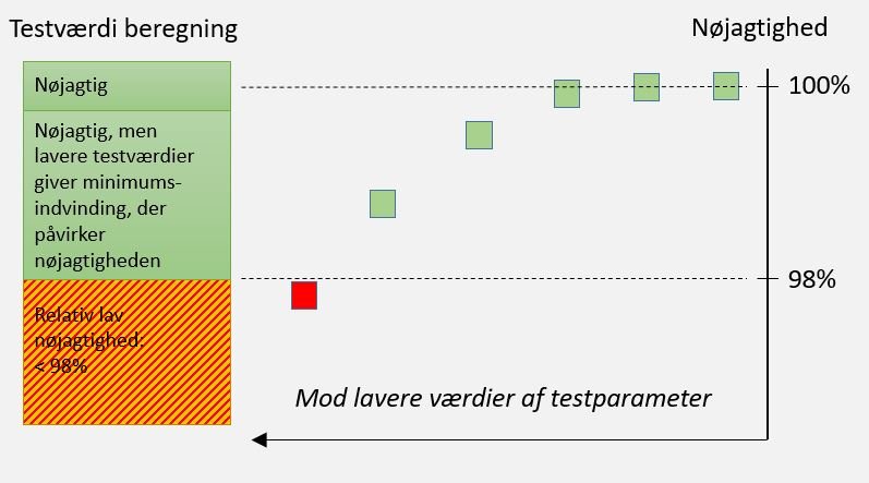 Programmet vælger blandt 12 mulige løsninger den med størst nøjagtighed i forhold til valgt testværdi. For hver parameter – afhængig af fordelingen af koncentrationen mellem boringerne, indvinding og minimumsindvinding – er der et interval, hvor den beregnede løsning er et anvendeligt resultat for en ny indvindingsfordeling.